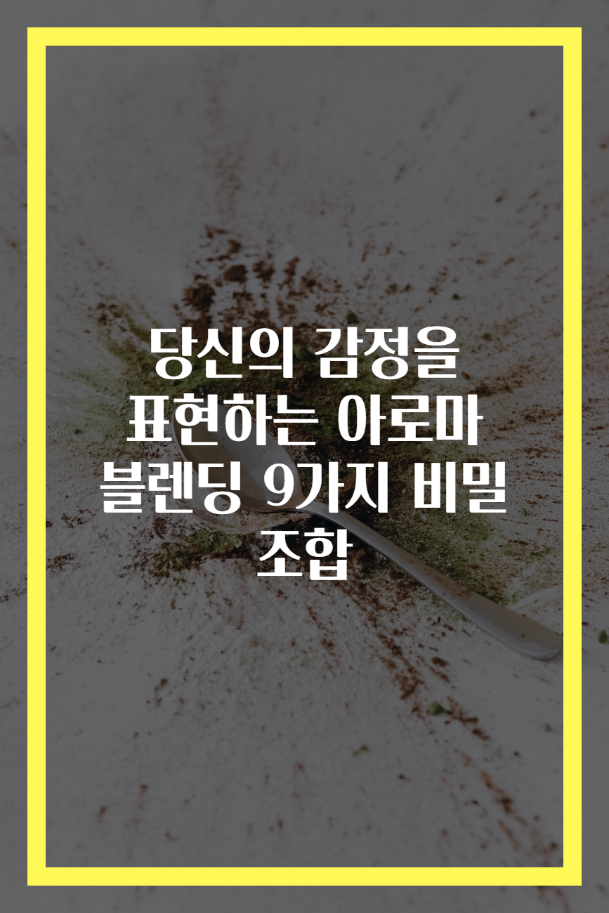 메타 설명: 아로마 블렌딩의 힘을 통해 행복과 안정감을 주는 9가지 비밀 조합을 알아보세요. 감정을 표현하고 웰빙을 향상시킬 수 있습니다.