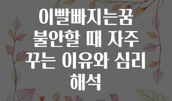 🤔 “이빨 빠지는 꿈” 자주 꾸는 이유와 심리 해석🌙🦷