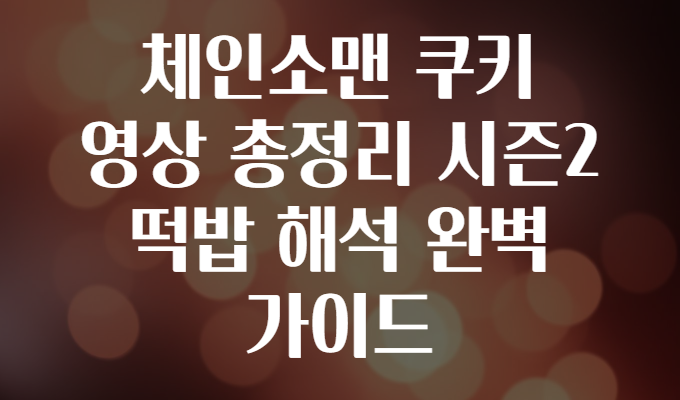 안녕하세요! 🎬 요즘 체인소맨(Chainsaw Man) 시즌2 쿠키영상에 대한 얘기가 뜨겁죠? 네, 저도 그 떡밥들 놓치지 않고 분석해보려고 왔습니다! 🧐 “쿠키영상이 뭐길래 이렇게 눈을 뗄 수 없을까?”, “시즌2가 남긴 이야기 속 숨은 의미는?”, “앞으로 전개될 스토리를 어떻게 해석하면 좋을까?” 하는 궁금증도 많으실 텐데요, 이번 글에서는 체인소맨 시즌2 쿠키영상 총정리와 함께 그 안에 숨겨진 떡밥 해석을 완벽 가이드로 알려드릴게요! 🌈