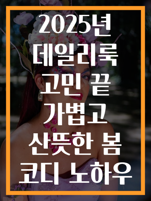이런 다양한 요소들을 종합적으로 고려해보면, 2025년 봄에는 자신만의 독창성을 드러내는 동시에 시기적절하고 편안한 데일리룩을 만들어낼 수 있을 것입니다. 봄의 따스한 기운을 받으면서 일상 속에서도 자신만의 멋을 잃지 않는 데일리룩을 위한 아이디어를 모아보아야 할 것입니다.